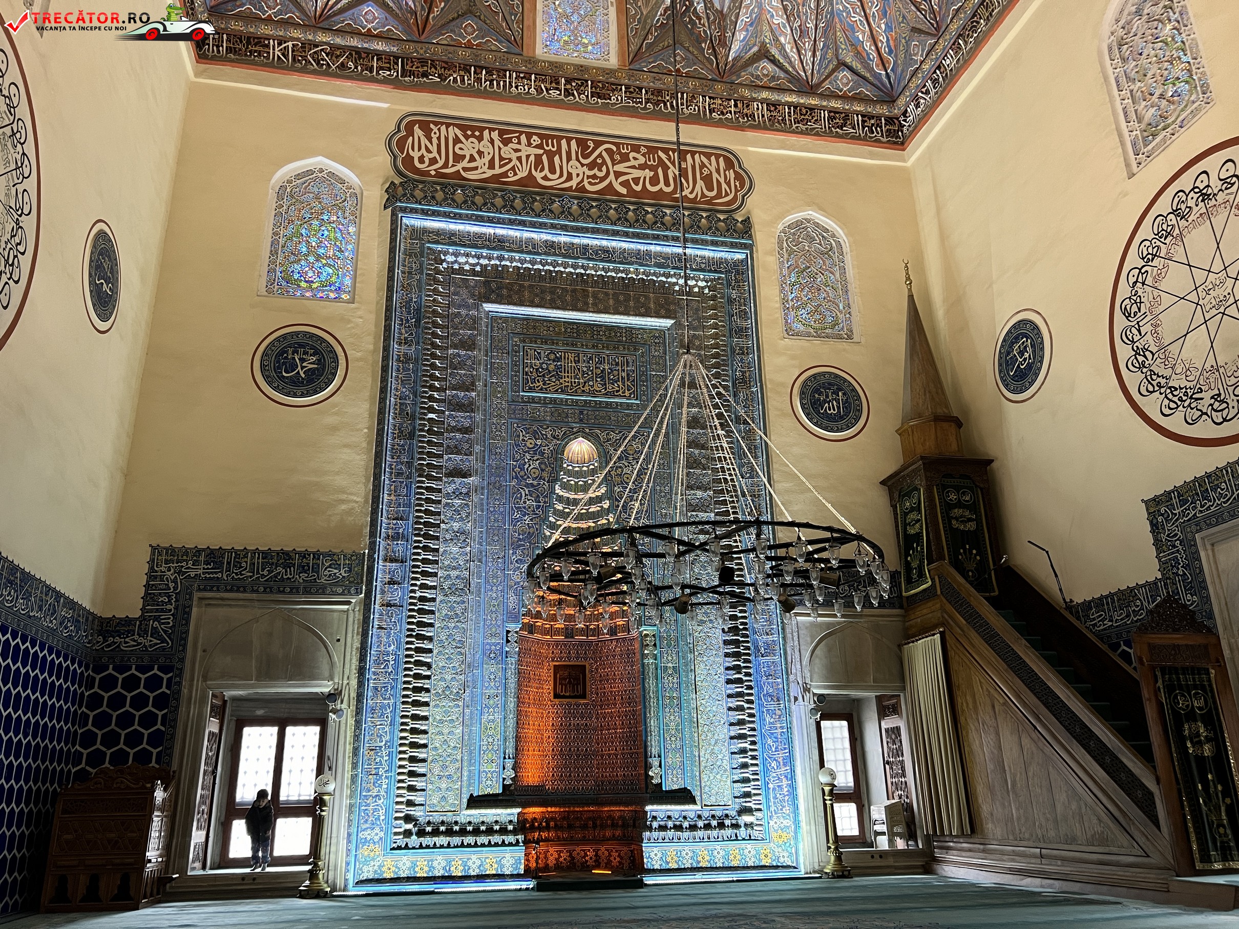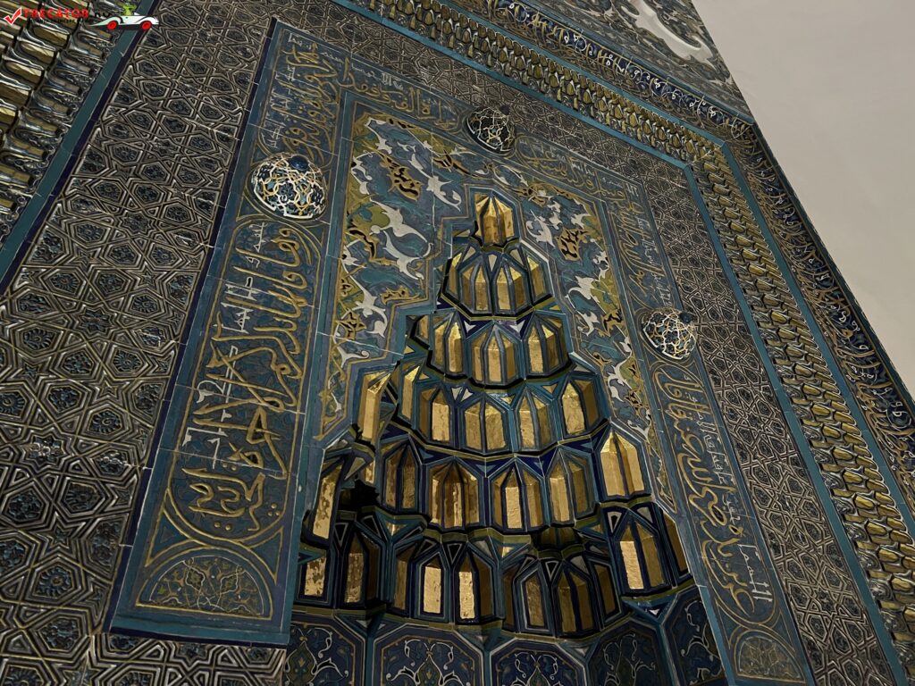 Yesil Külliye impresionează prin decorul său artistic elaborat, inclusiv inscripții coranice, vitralii și plăci ceramice cu detalii complexe.