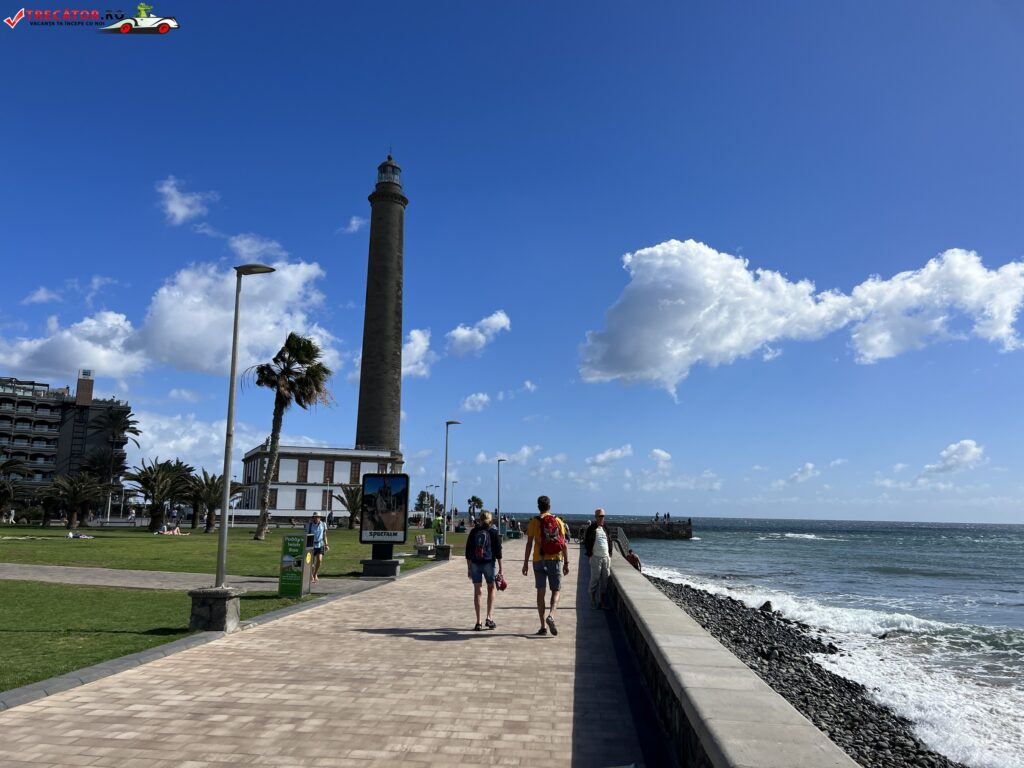 Farul și faleza plajei din Maspalomas, Gran Canaria, Spania