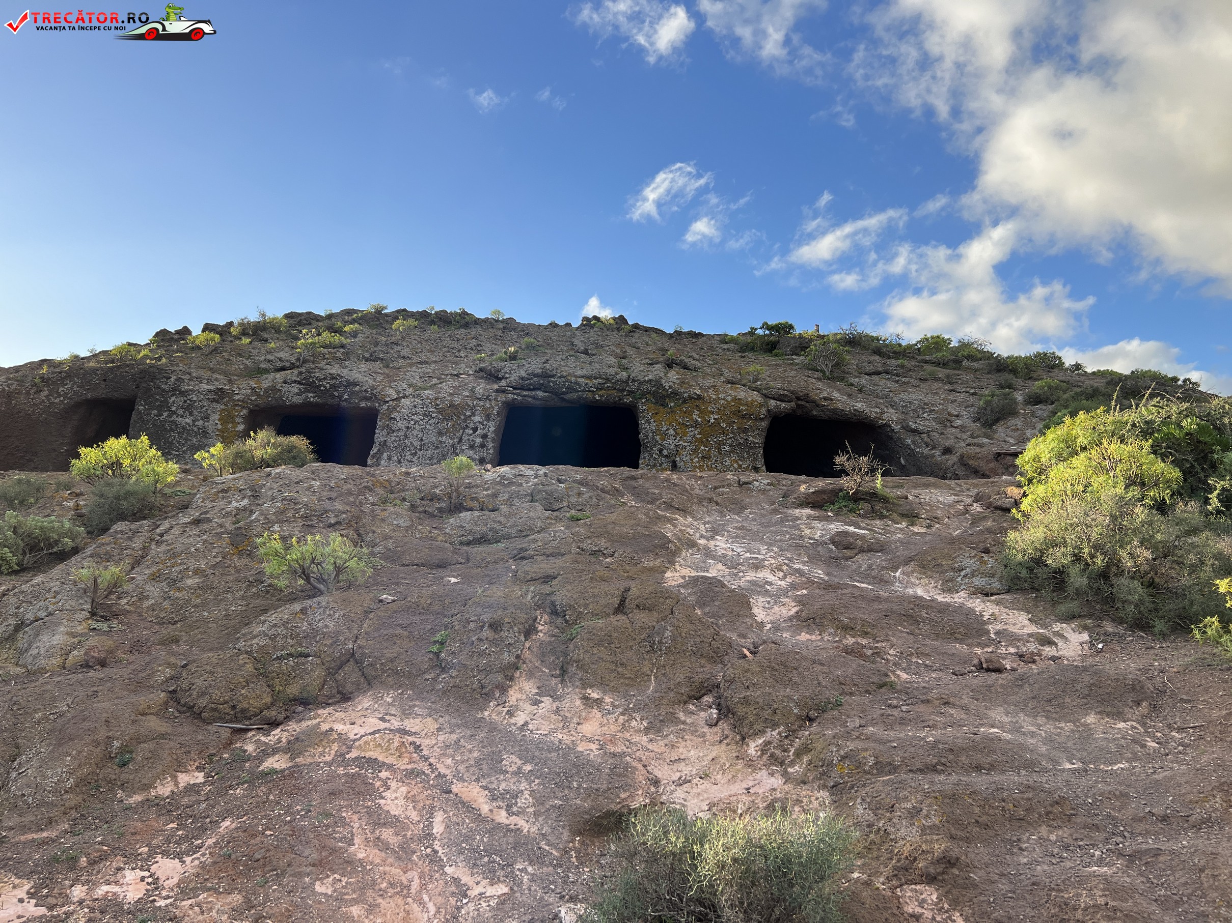 O pestera artificiala sapata manual in toba vulcanica, situata la trei sute de metri peste nivelul marii, pe Muntele Bermeja. Numele sau provine din cele patru intrari, sau usi, care sunt orientate spre nord si duc la o platforma orizontala, marea sala.