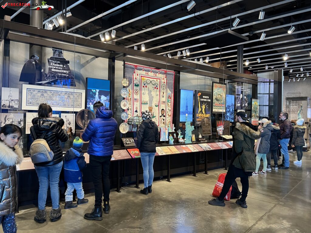 În muzeu, vizitatorii pot vedea mai multe exponate interactive și multimedia, precum și obiecte istorice și artefacte legate de istoria Statuii Libertății și a insulei. De asemenea, sunt prezentate informații despre istoria imigrației în Statele Unite și despre rolul pe care insula și statuia l-au jucat în procesul de imigrare.