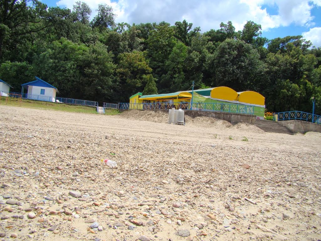 Între plaja din Cap Aurora și unitățile de cazare sunt dispuse două terase de ciment.