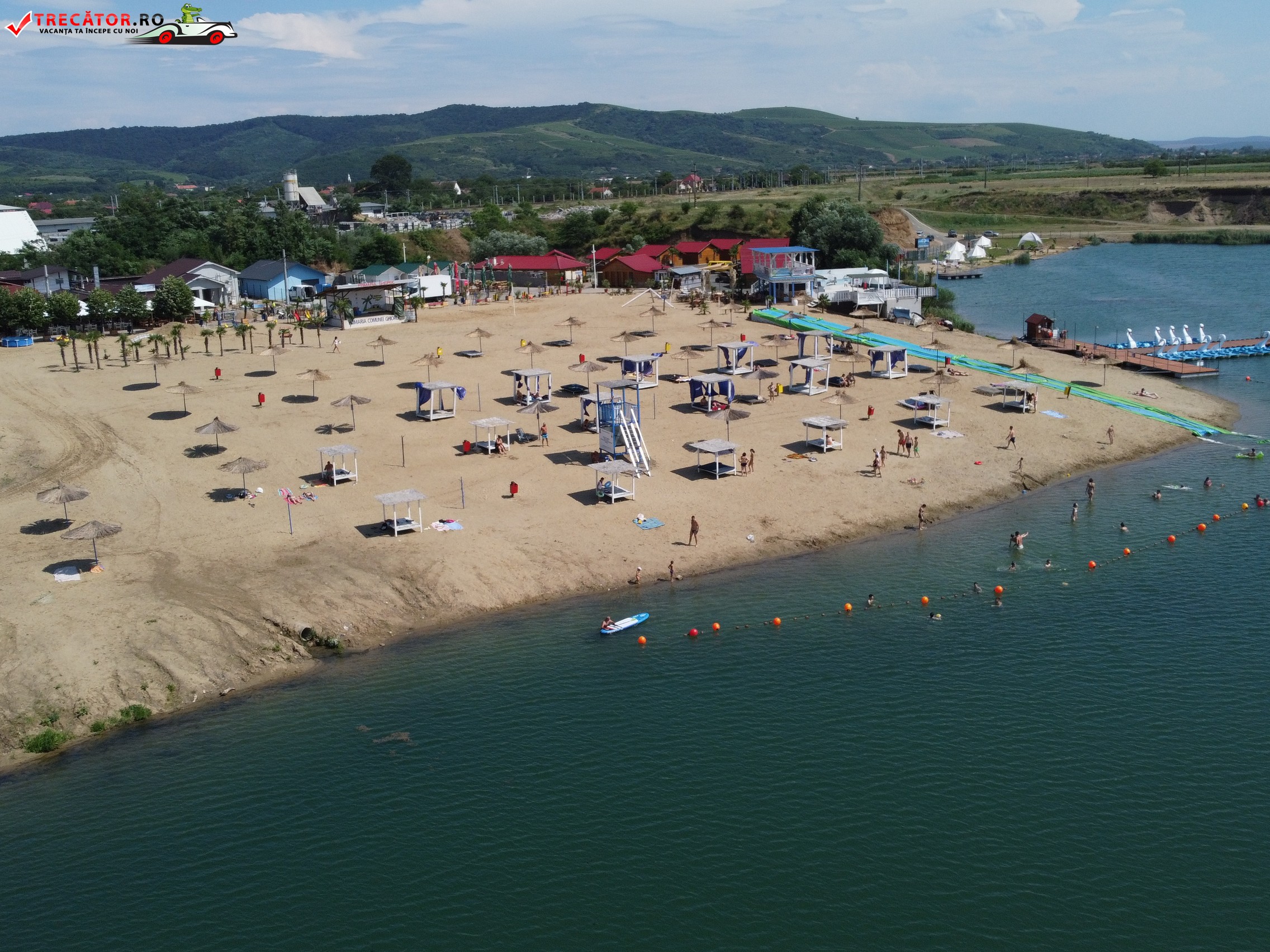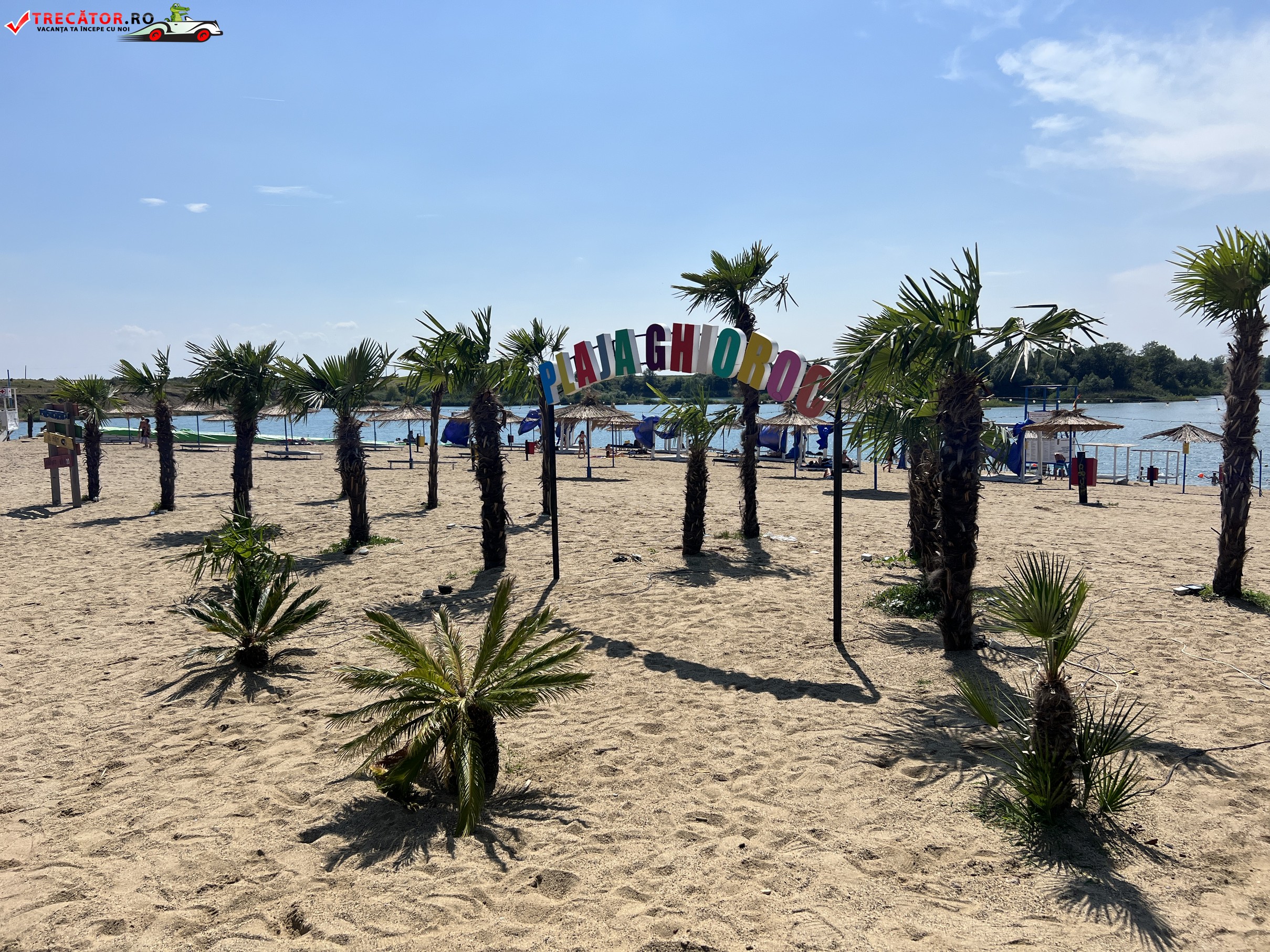 Lacul Ghioroc este amenajat cu o plajă de nisip, palmieri, paturi de plajă cu baldachin, parcare auto de 680 de locuri, nouă restaurante cu terasă, tobogan tip „slip and slide” și hidrobiciclete în formă de lebădă.
