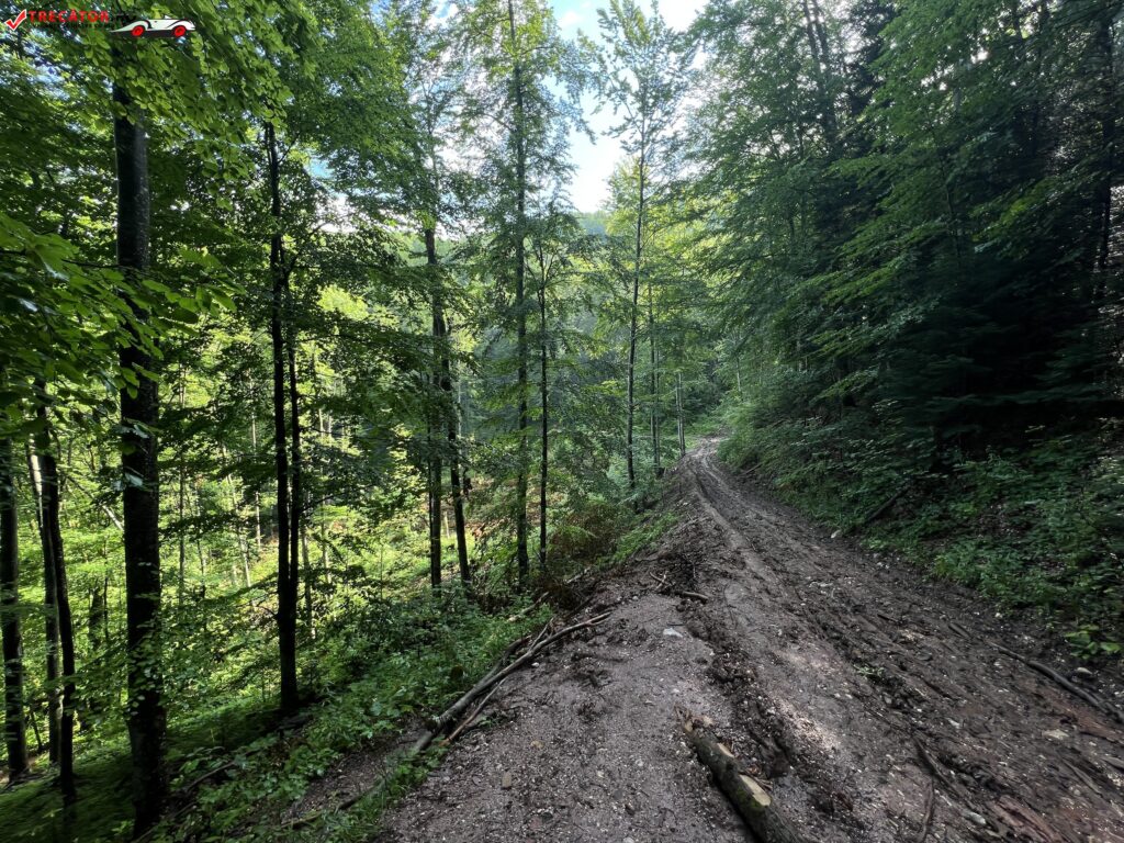 Traseul merge pe drumul forestier, traversează Valea Bulbuci, ajunge pe versantul drept al văii şi după aproximativ 100 de m face stânga pe un vâlcel abrupt.