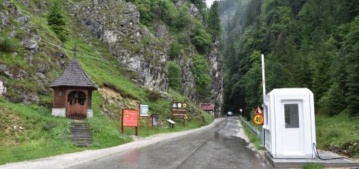Imediat după ce am traversat podul cotim la stânga pe drumul de lângă lac, bariera ne spune clar ca accesul auto nu este permis.