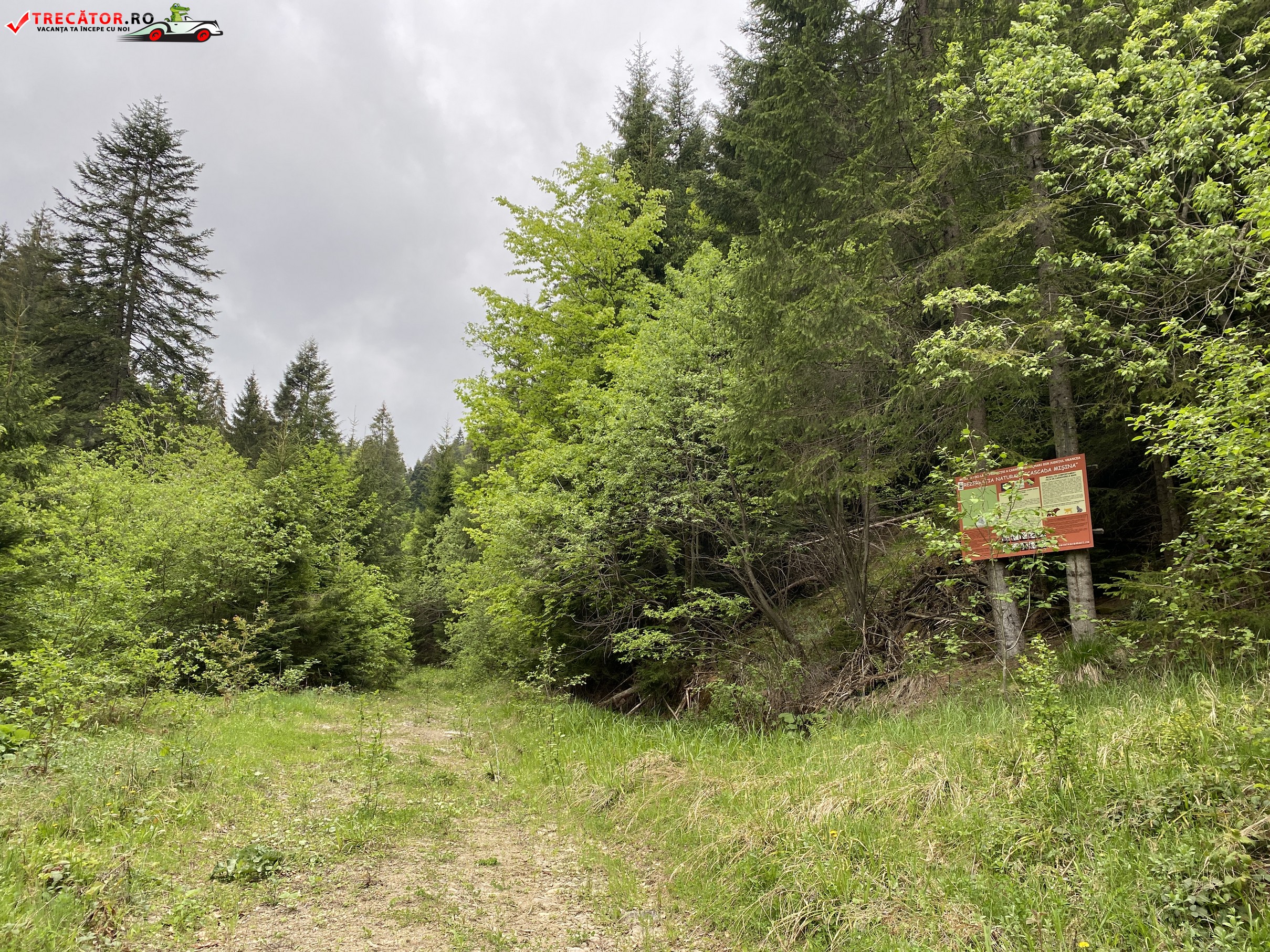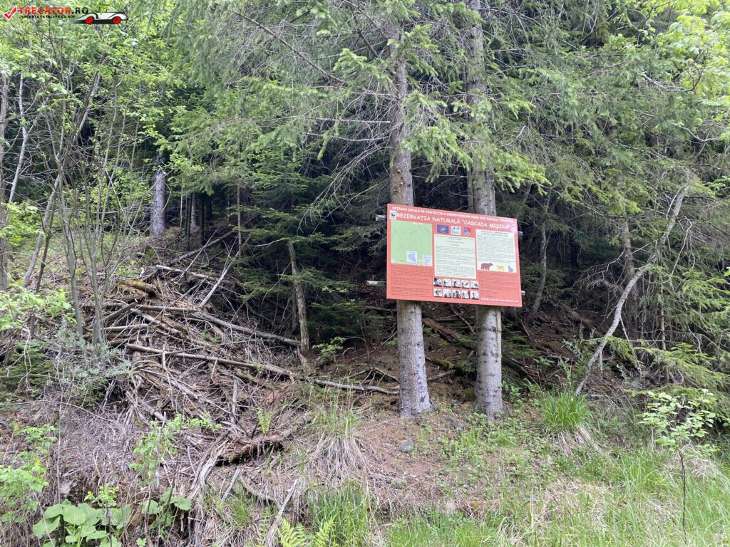 De aici și până la Cascada Mișina se merge pe acest drum forestier destul de ușor dacă ai o oarecare mică experiență de drumeție. La un moment dat drumul se termină, face stânga și trece prin râu voi trebuie să mergeți în continuare până dați de acest panou.