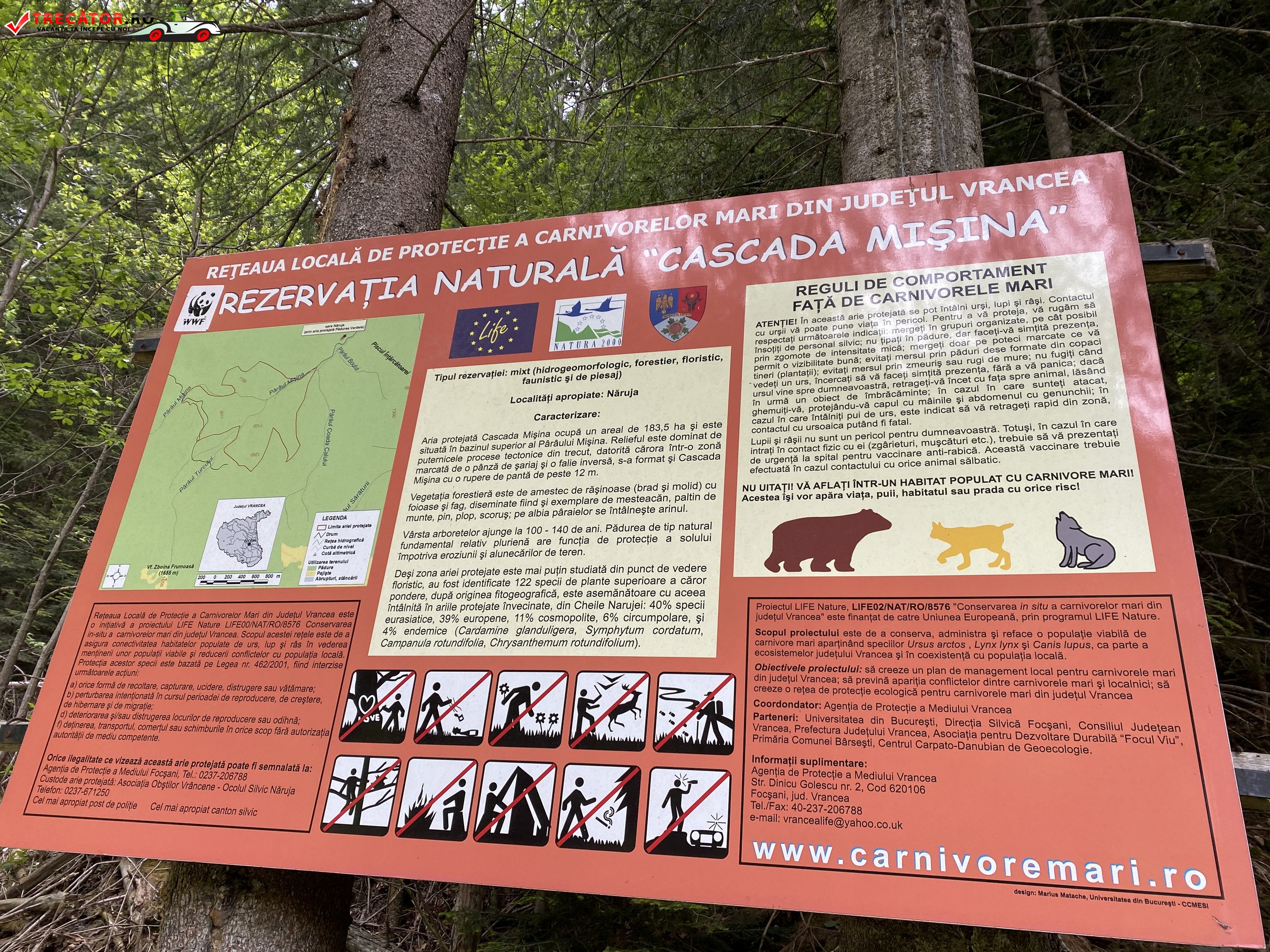 Mergeți înainte circa 10 minute după ce ați întâlnit acest panou și veți da de cascada Mișina. Mai jos aveți aceași explicație de mai sus doar prezentată video. Sper că veți ajunge și voi la această cascadă, Cascada Mișina.