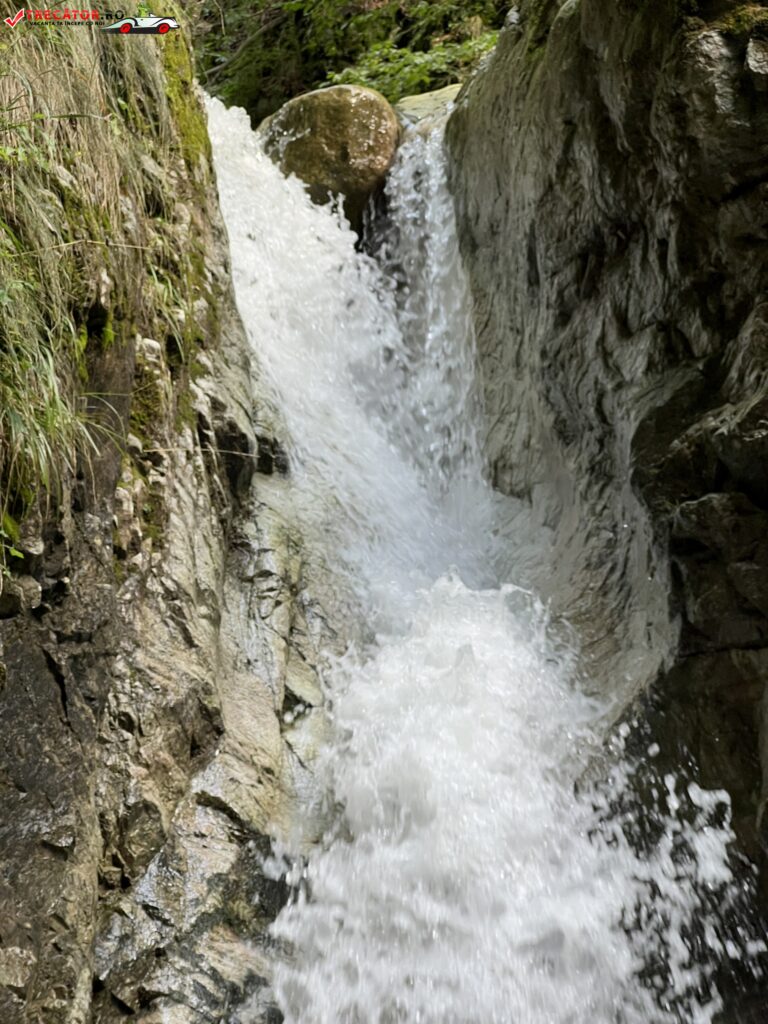 De la bariera pana la cascada mai sunt vreo 7-800 de metri de mers pe plat, pe drum forestier. Cascada se vede din drum.