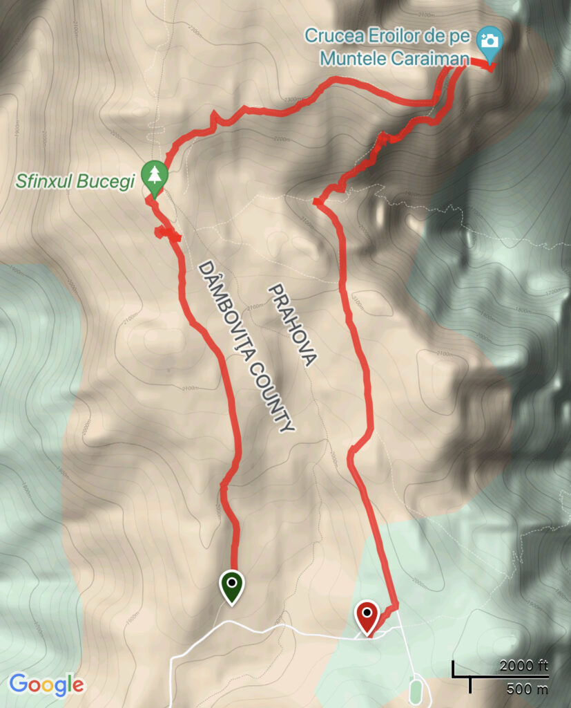 - puteți ajunge pe Vf. Caraiman (2,384m) urcând dealul de la Cruce (nu aveți cum să nu-l vedeți);