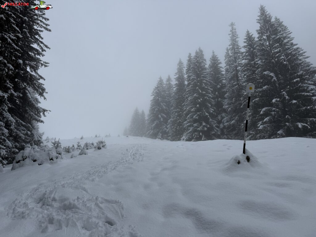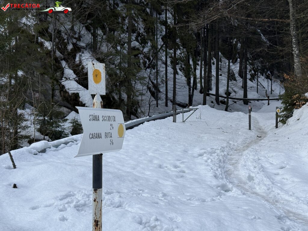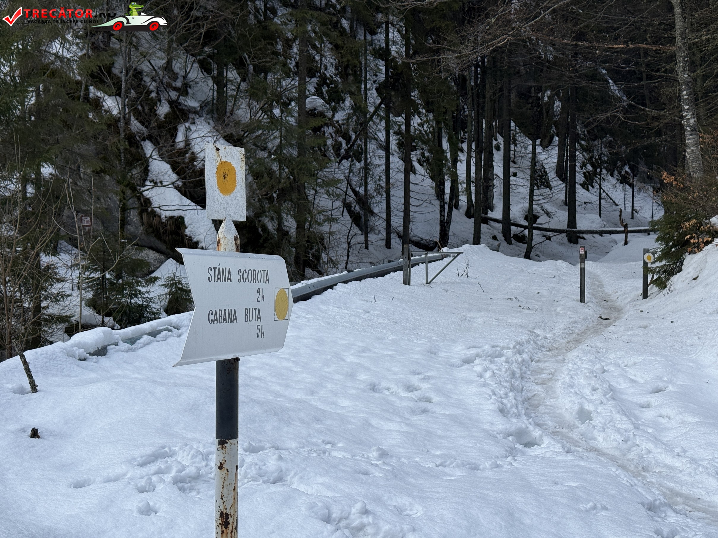 Traseul este marcat cu punct galben până la Stâna Scorota. În condiții de vizibilitate redusă sau zăpadă abundentă, marcajele pot fi dificil de observat, așa că orientarea trebuie făcută cu atenție.