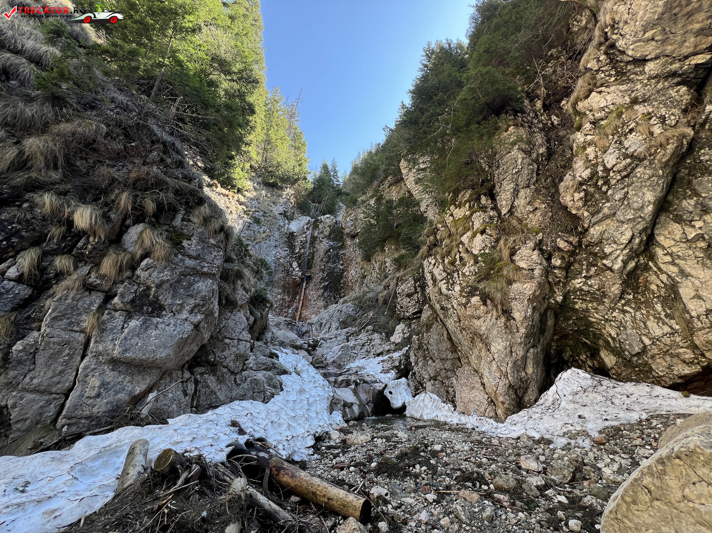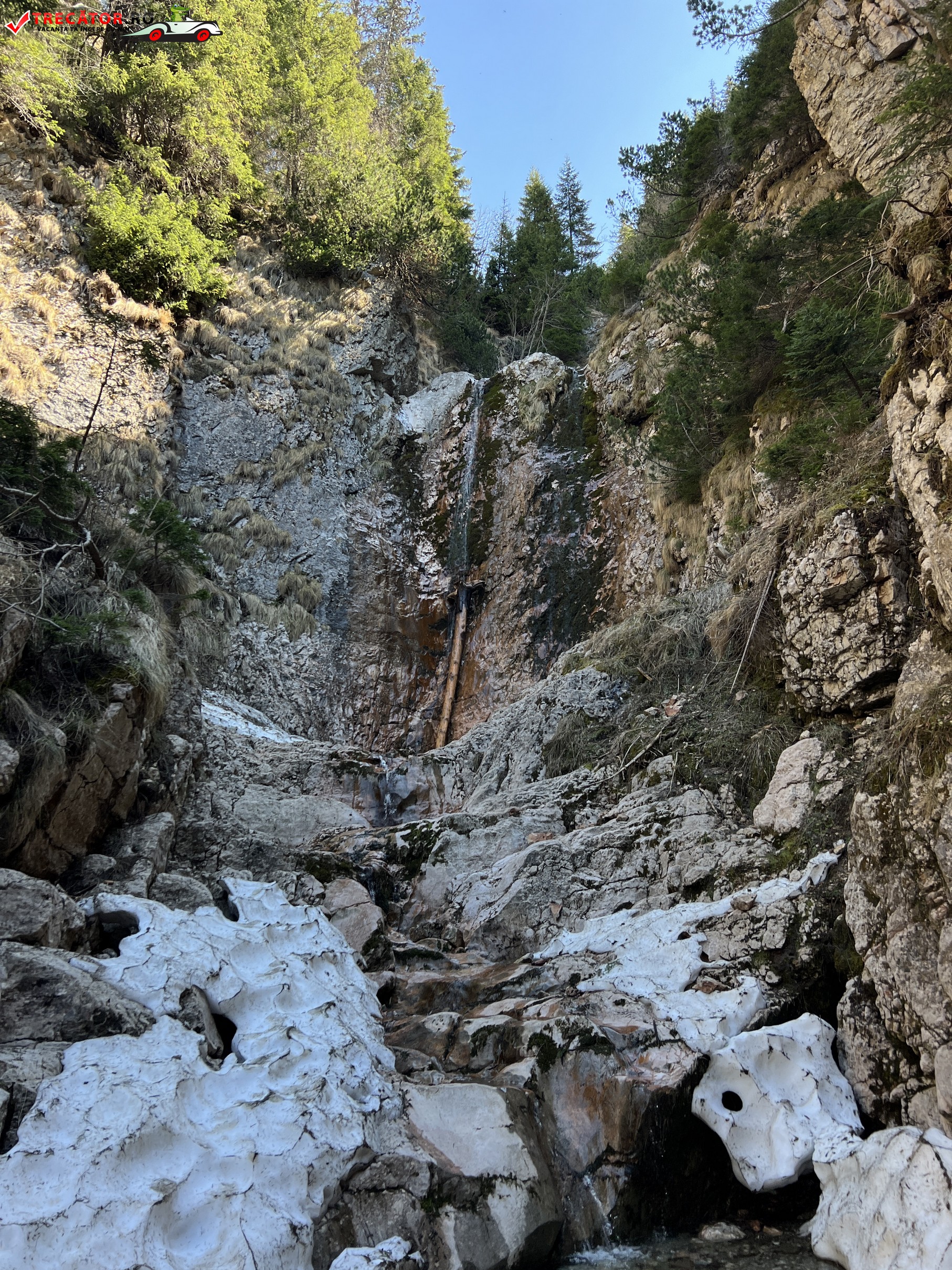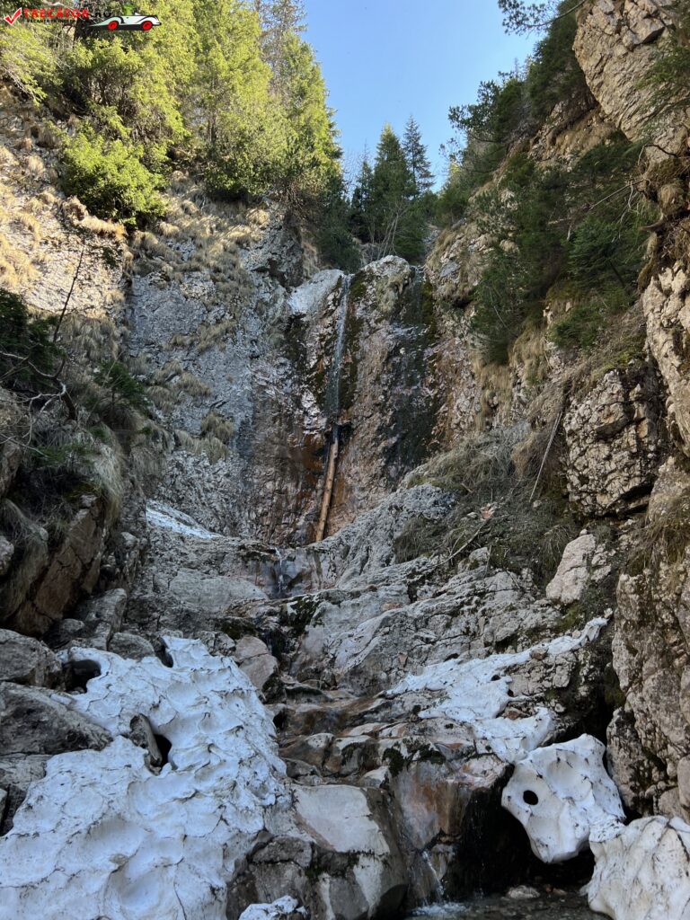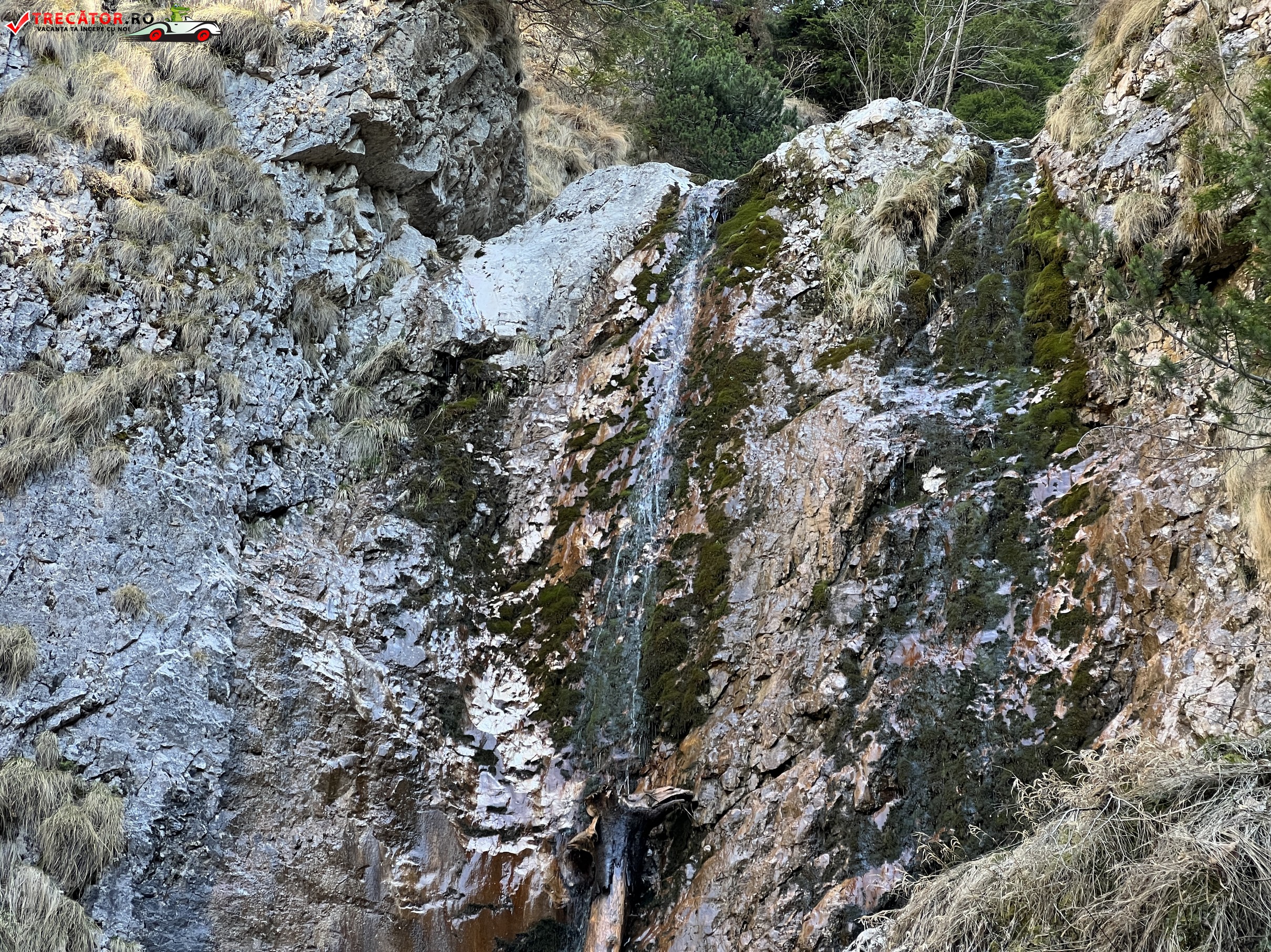 Din păcate, deși era zăpada care se topea, cascada avea un debit destul de mic, mai degraba apa se prelingea pe stâncă, avea un debit extrem de mic.