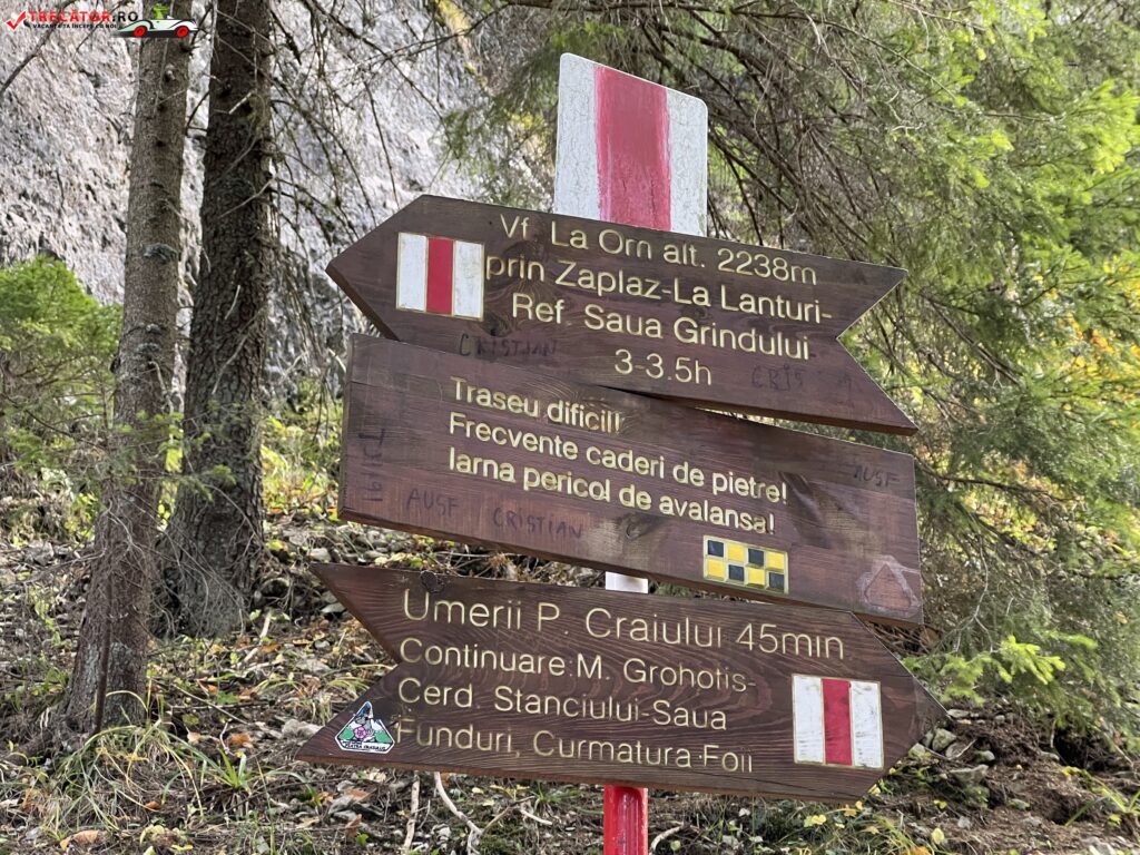 După aproximativ 2 ore de urcuș până la refugiu, apara și traseul care duce la Vf. La Om (alt. 2238m) prin Zaplaz, La lanțuri, Refugiul Șaua Grindului.