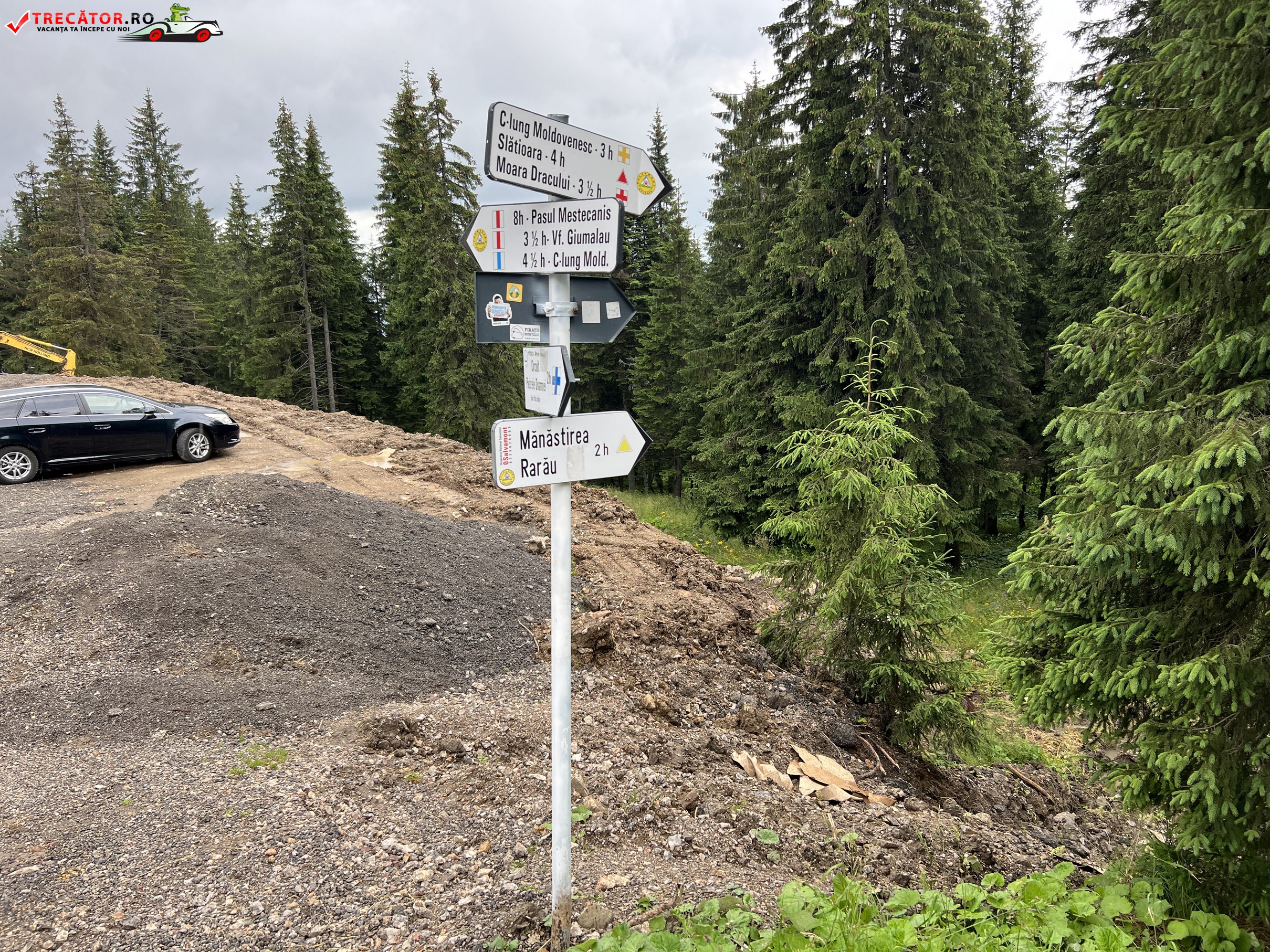 La Cabana Rarău fiind proprietate privată parcarea a trebuit plătită, 10 lei în iulie 2023.