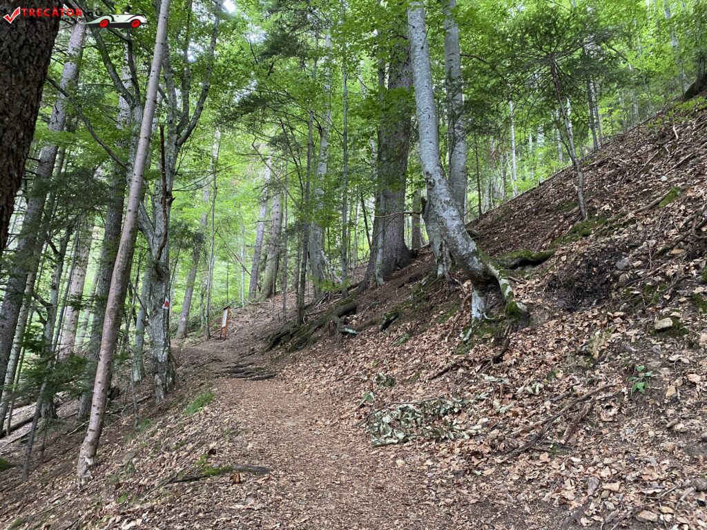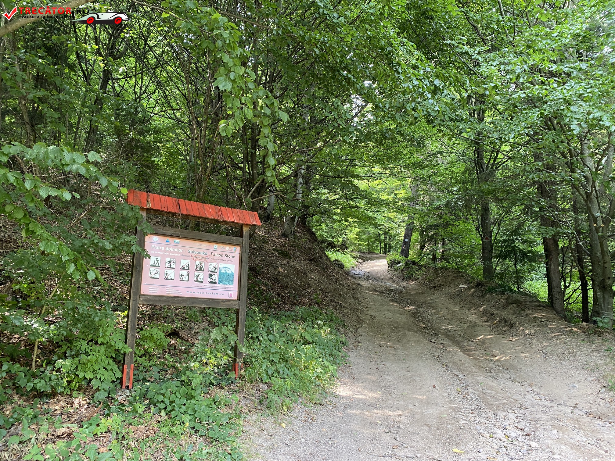 De aici, drumul continuă prin urcare pe 10 serpentine pe versantul abrupt al Pietrei Şoimilor. După cca. 50 minute de urcuș, pădurea se rarefiază şi se ajunge în spatele unei stânci mai mici, aflată la capătul de sud al Pietrei Şoimilor.