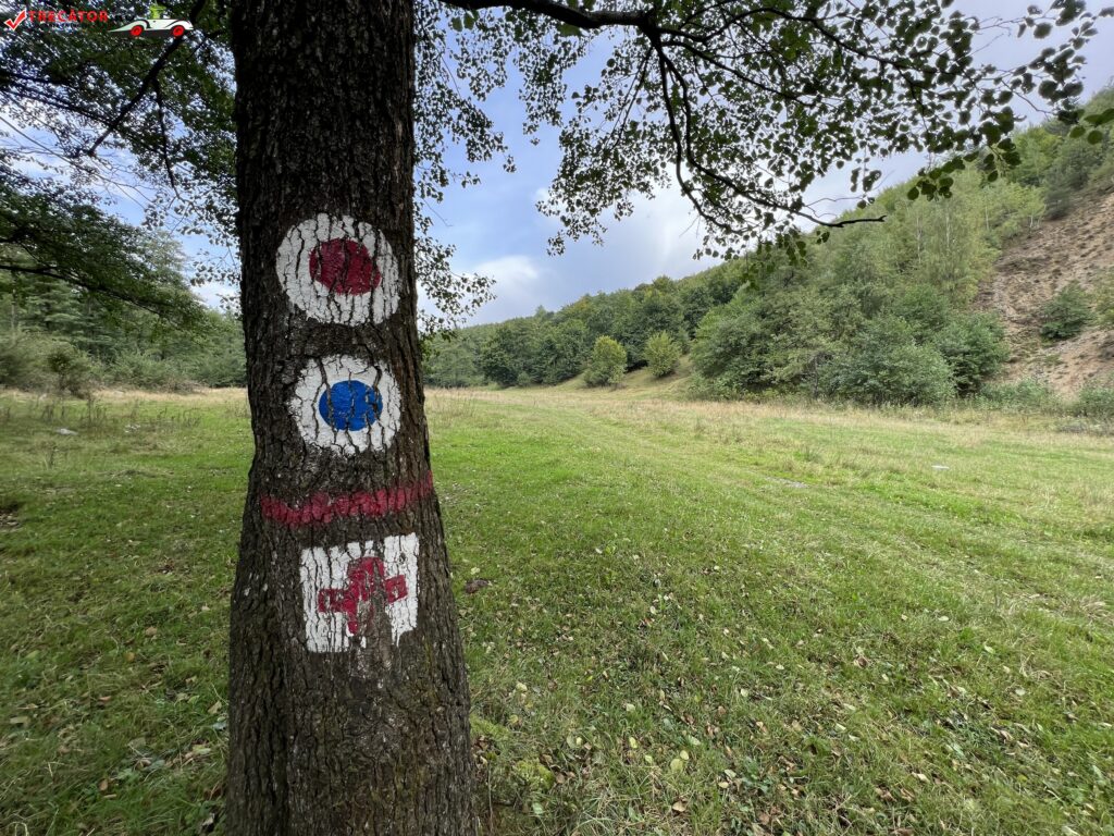 La un moment dat, după ce ajungi pe platou, trebuie să faci stânga, semnul „punctul albastru” îl vezi în față dar el duce pe alt traseul la Crucea lui Ursache Vest.