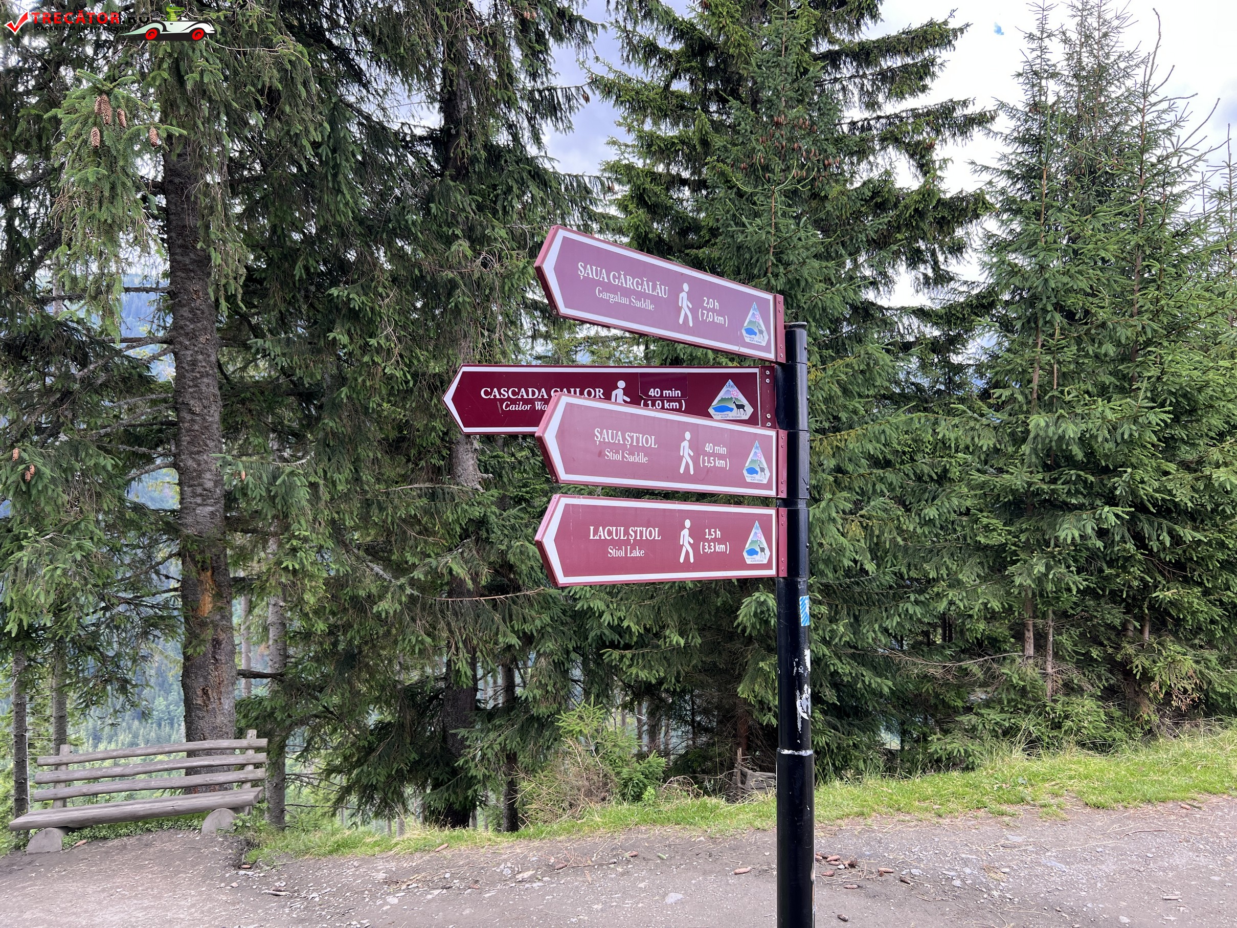 Dacă se dorește urcarea cu telescaunul, scutindu-se astfel ceva timp, se poate continua pe marcaj bandă albastră, un traseu domol de urcat pe un drum forestier, sau se poate face un detur de 15-20 minute de coborâre până la Cascada Cailor, de unde se poate continua urcarea spre Lacul Știol pe marcaj triunghi roșu, această variantă prezintă un urcuș destul de pronunțat.