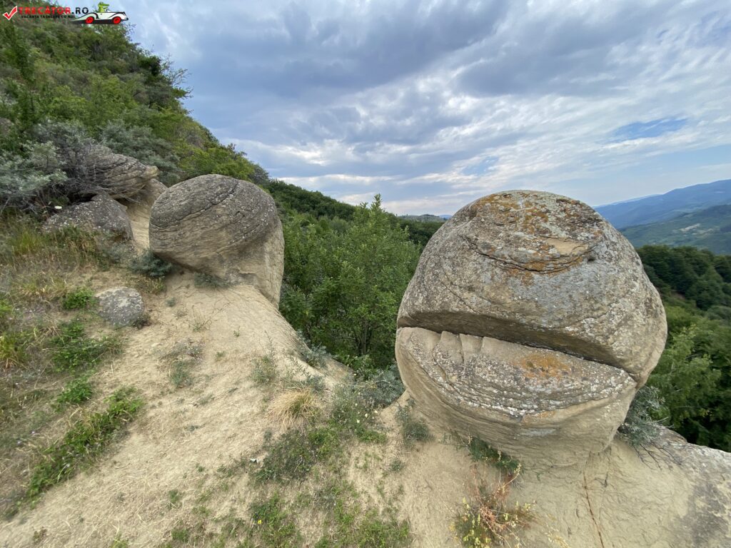 Trovanţii din Chiojdu se remarcă prin masivitatea lor şi prin formele aproximativ sferice sau eliptice. Trovanţii din baza versantului, grefaţi pe gresii oligocene, au dimensiuni mici şi reprezintă primele faze în formarea lor.