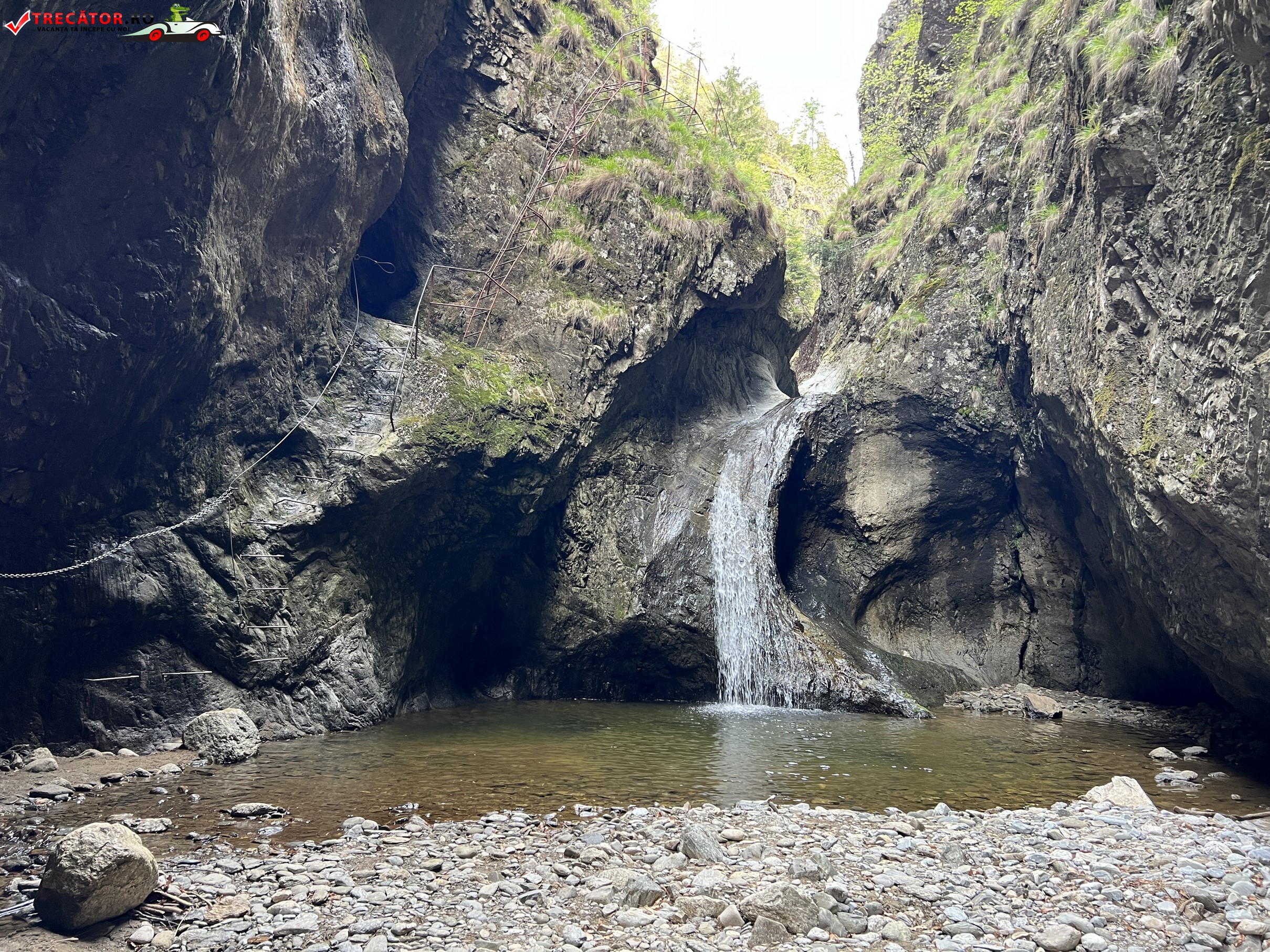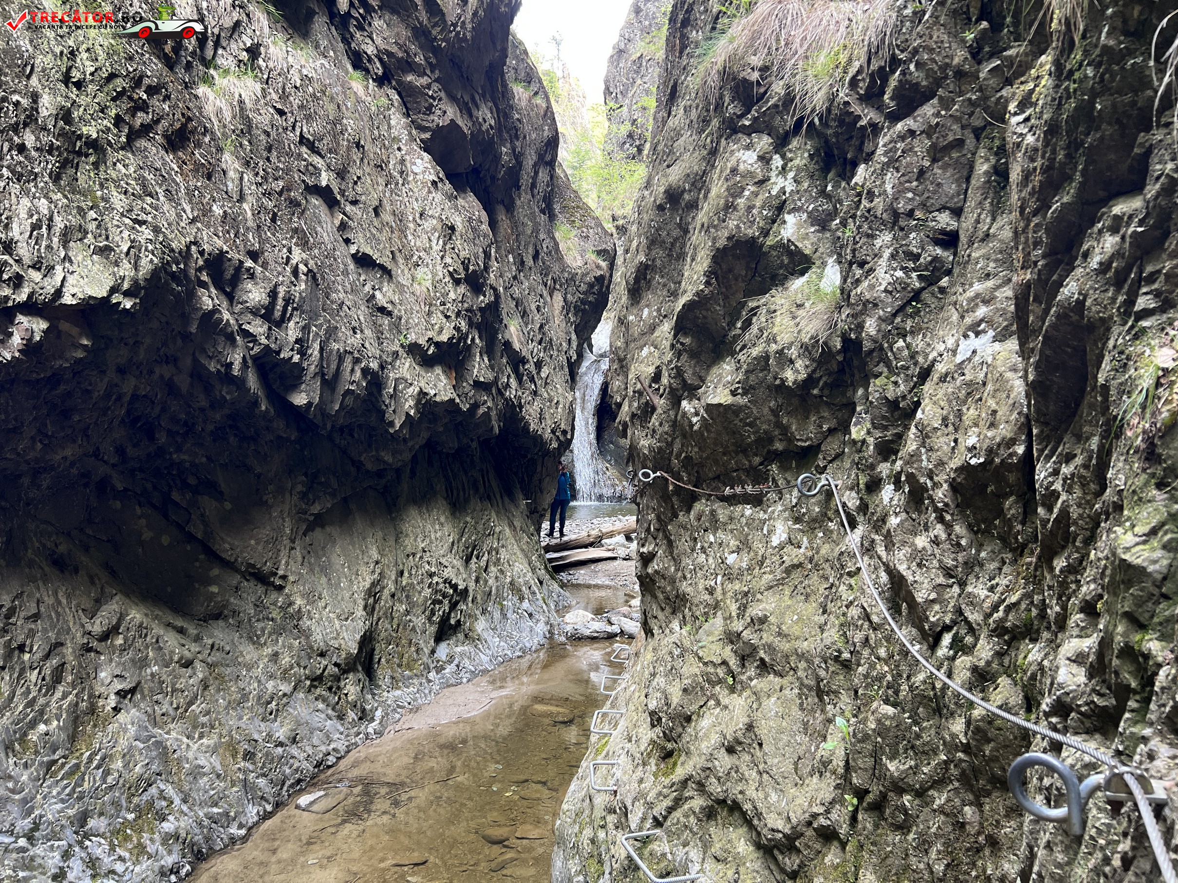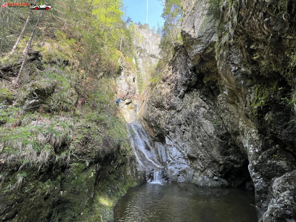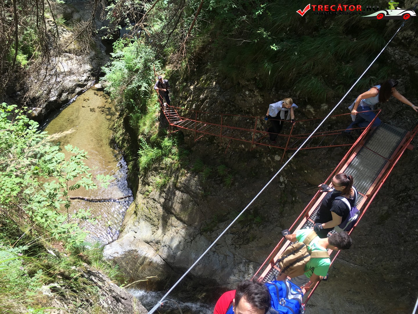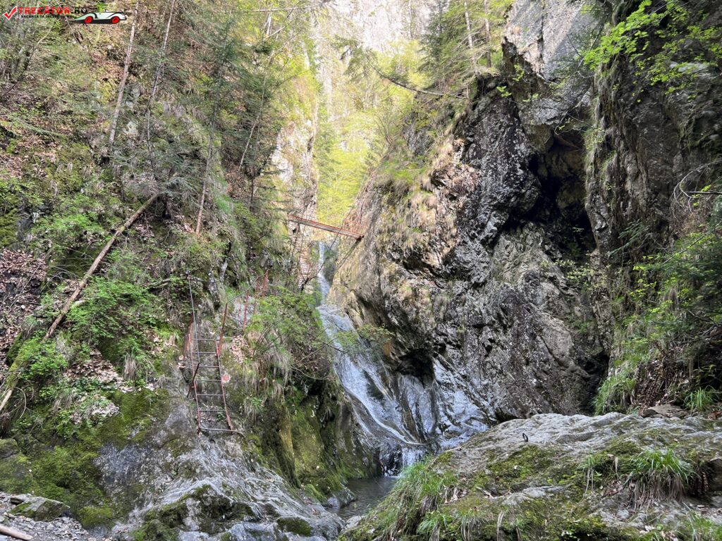 Cea mai spectaculoasă porţiune o constituie traversarea pe pasarela metalică suspendată peste firul îngust al văii, pe deasupra pragului dintre două cascade. Odată traversat acest podeţ, aveţi şi de urcat o scară verticală, lungă de circa 10 m.
