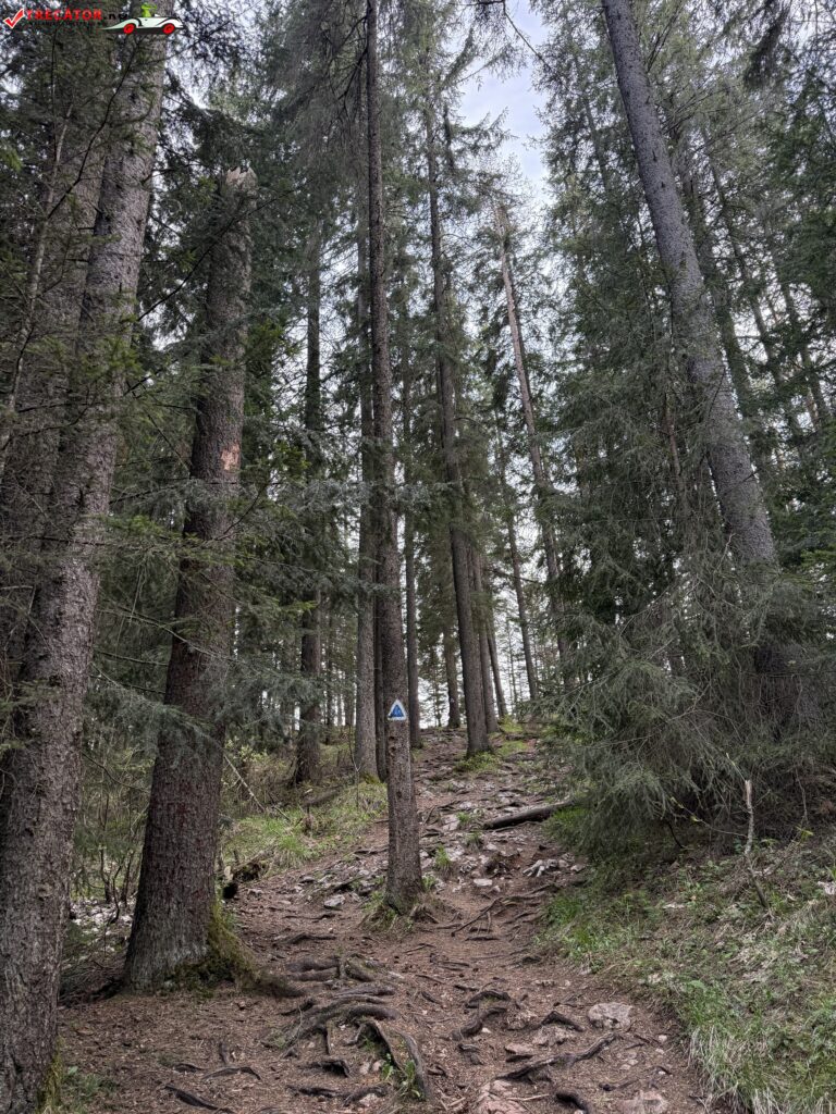 Traseul începe din stațiunea Lacul Roșu, mai exact din fața Hotelului Turist, situat la aproximativ 500 de metri de centrul stațiunii, spre Cheile Bicazului. Marcajul de urmat este triunghiul albastru, iar traseul are o lungime de aproximativ 4 km dus-întors, cu o diferență de nivel de circa 400 m.