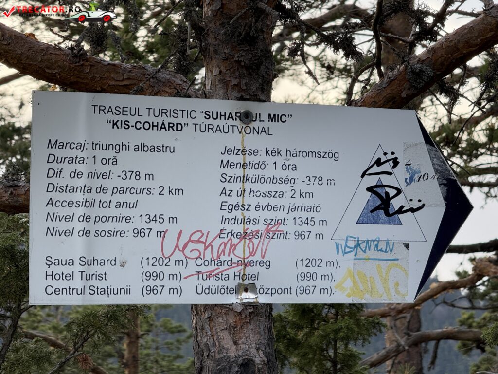 Vârful Suhardul Mic (1345 m) este un punct de belvedere spectaculos din Munții Hășmaș, oferind o panoramă impresionantă asupra Lacului Roșu și împrejurimilor. Traseul către vârf pornește din stațiunea Lacul Roșu, din fața Hotelului Turist, și este marcat cu triunghi albastru. Cu o lungime de aproximativ 4 km dus-întors și o diferență de nivel de circa 400 m, traseul este accesibil pe tot parcursul anului, deși iarna pot apărea dificultăți din cauza gheții sau zăpezii.