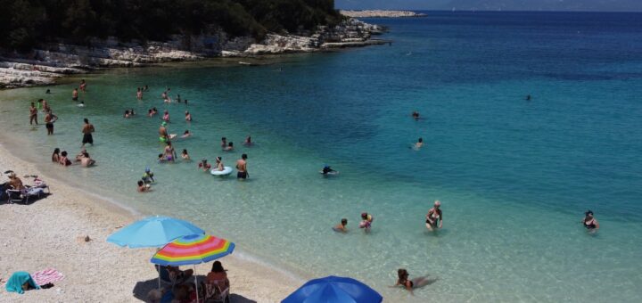 La aproximativ un kilometru sud de Fiskardo, de-a lungul drumului de coastă, întâlnim o plajă pe care nu se stă la umbră sub clasicele umbrele ci direct sub ramurile măslinilor crescuţi până aproape de...