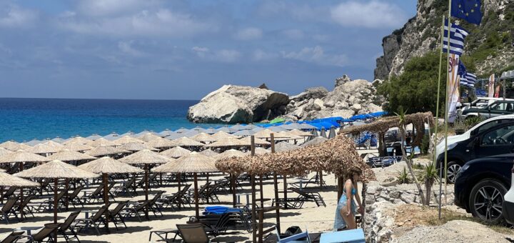 Este cea mai ușor accesibilă plajă din Lefkada, este bine amenajată, sunt parcări libere și cu plată și în plus are și nisip, chiar dacă nu e cel mai fin. Vegheată la ambele capete...