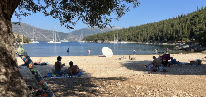 La aproximativ un kilometru sud de Fiskardo, de-a lungul drumului de coastă, întâlnim o plajă pe care nu se stă la umbră sub clasicele umbrele ci direct sub ramurile măslinilor crescuţi până aproape de...