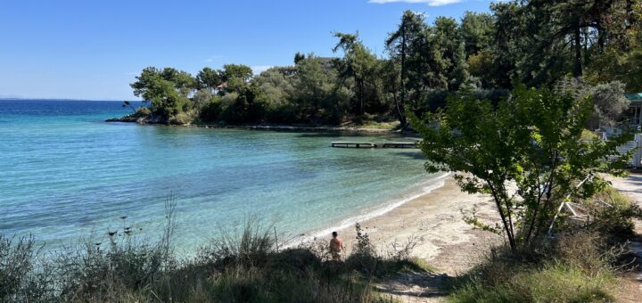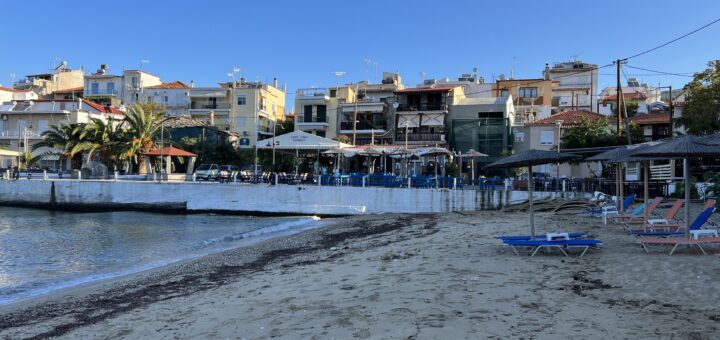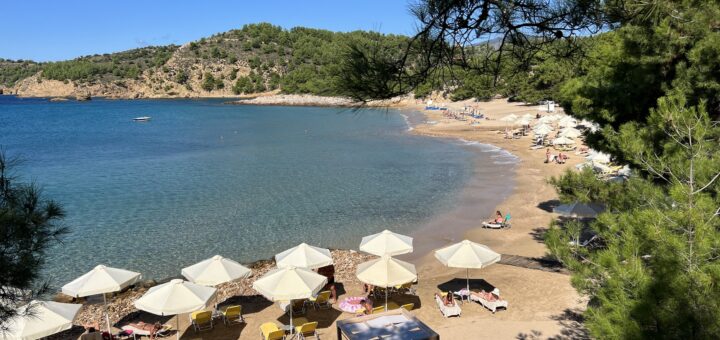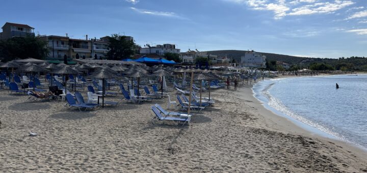 Este o plajă din nisip alb și pietricele perfectă pentru o baie rapidă în timp ce aștepți să ți se servească masa la una dintre tavernele de pe malul apei. Plaja este destul de...
