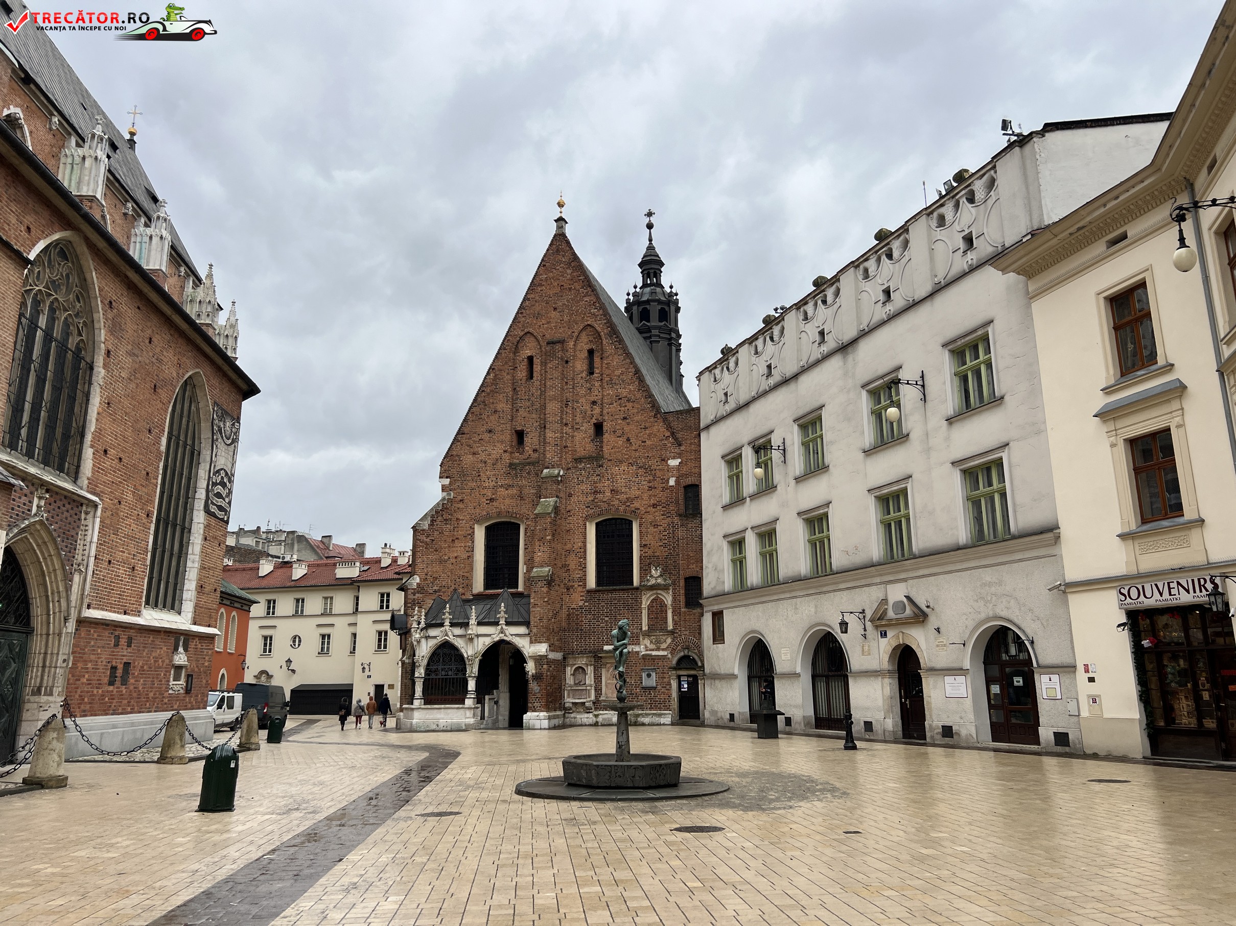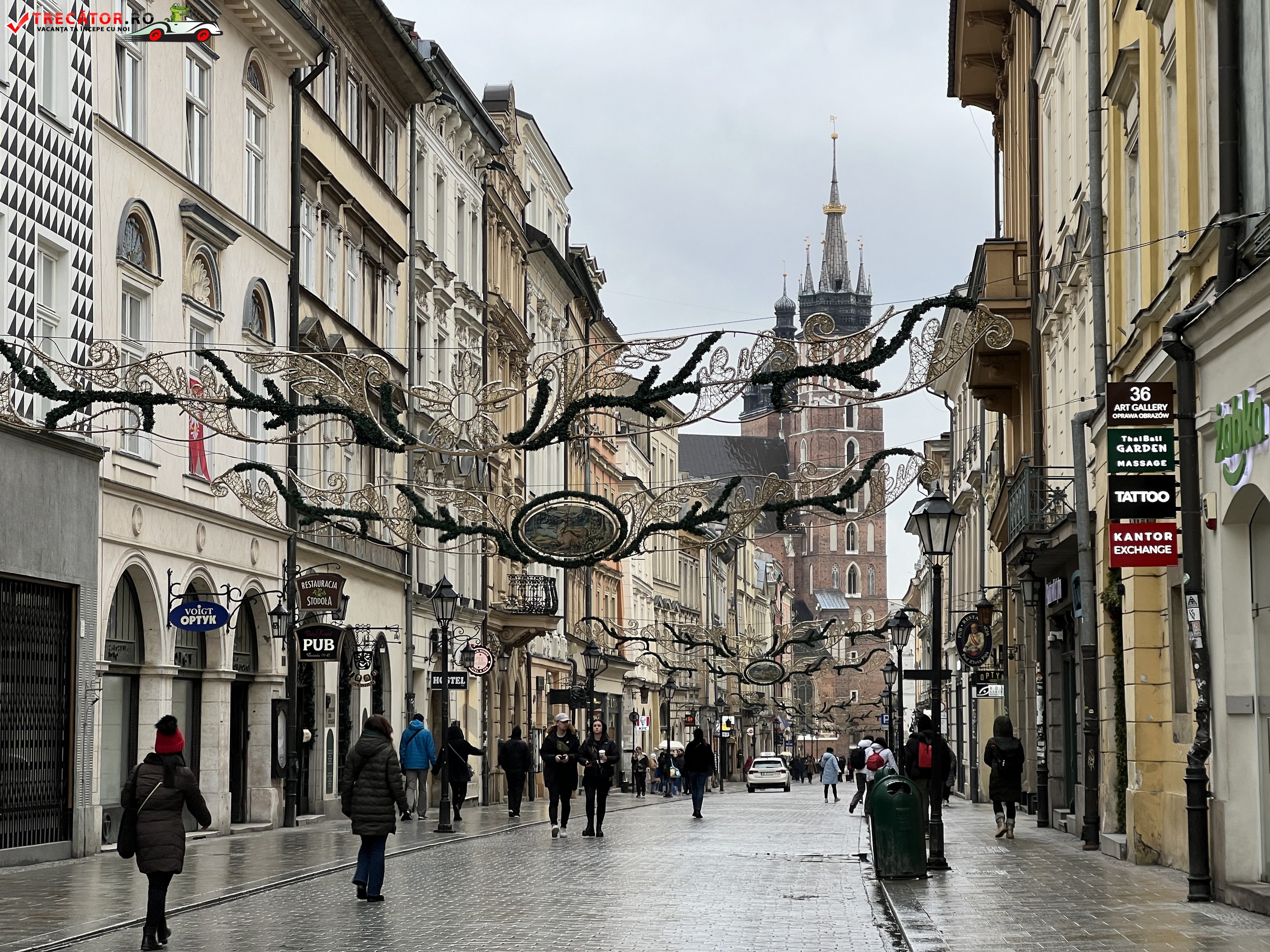- Piața Centrală (Rynek Główny): Una dintre cele mai mari piețe medievale din Europa, găzduiește numeroase cafenele, restaurante, magazine și monumente istorice, precum și celebra Basilică Sfânta Maria.